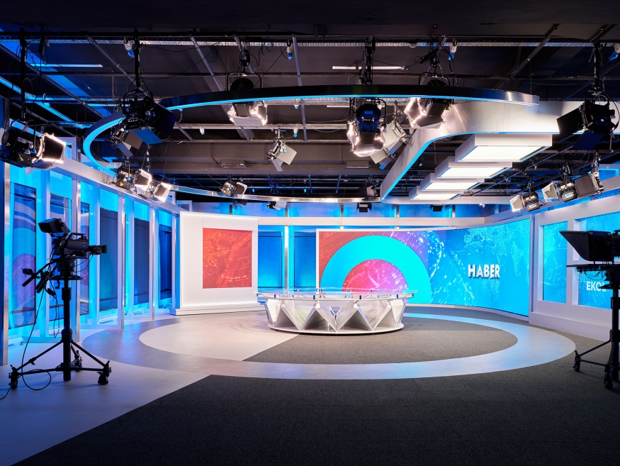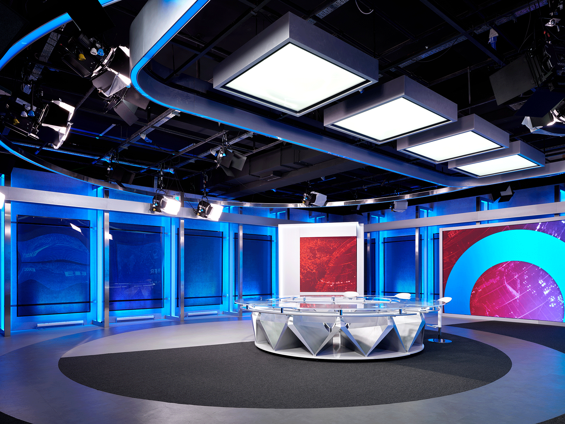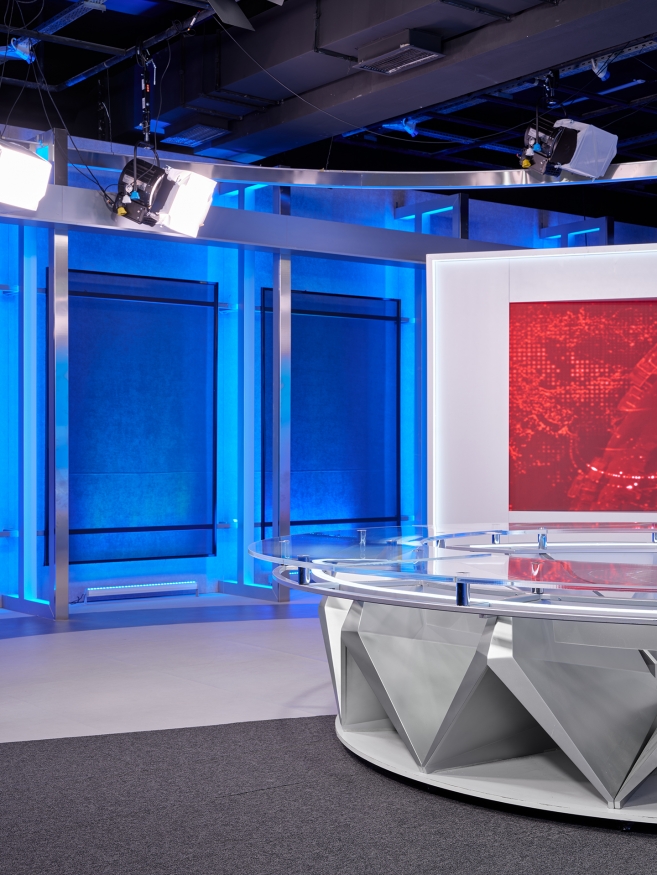 The news studio designed to represent the innovative and determined stance of the newly established television channel;